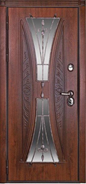 Входные двери в Ирбите с применением декора витражом изготавливаются из стального профиля, придающего прочность конструкции, а сама витражная вставка обладает высокой взломостойкостью, поскольку для витражных композиций используется специальное стекло, обработанное особым образом. Усилить надежность витражного элемента можно с помощью использования декоративных кованных решеток.