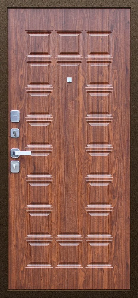 Надежная входная Дверь Спартак Орех темный премиум класса по цене 34 163 руб. Большая толщина стали защитит от проникновения в ваш дом, квартиру или коттедж. Используется очень качественная фурнитура: замки, цилиндры, ручки, защелки. Покрытие и отделка двери изготовлено под внимательным контролем производителя. Дверь имеет долгий срок службы и гарантию.