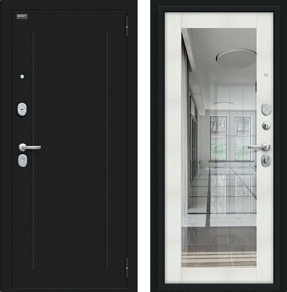 Надежная входная Дверь Браво Флэш Букле черное/Bianco Veralinga премиум класса по цене 32 913 руб. Большая толщина стали защитит от проникновения в ваш дом, квартиру или коттедж. Используется очень качественная фурнитура: замки, цилиндры, ручки, защелки. Покрытие и отделка двери изготовлено под внимательным контролем производителя. Дверь имеет долгий срок службы и гарантию.