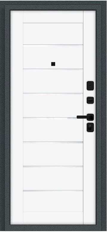 Надежная входная Дверь Браво Техно/SBlack Старк антрацит/White Silk премиум класса по цене 36 113 руб. Большая толщина стали защитит от проникновения в ваш дом, квартиру или коттедж. Используется очень качественная фурнитура: замки, цилиндры, ручки, защелки. Покрытие и отделка двери изготовлено под внимательным контролем производителя. Дверь имеет долгий срок службы и гарантию.