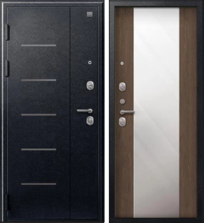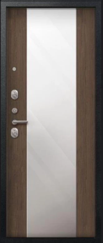Надежная входная Дверь V-04 Черный муар - Миндаль Зеркало премиум класса по цене 42 563 руб. Большая толщина стали защитит от проникновения в ваш дом, квартиру или коттедж. Используется очень качественная фурнитура: замки, цилиндры, ручки, защелки. Покрытие и отделка двери изготовлено под внимательным контролем производителя. Дверь имеет долгий срок службы и гарантию.